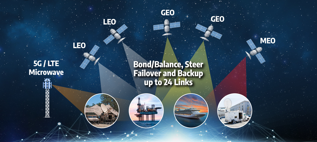 Support for any IP WAN link such as LEO, MEO, GEO, 5G, 4G/LTE, and Microwave.